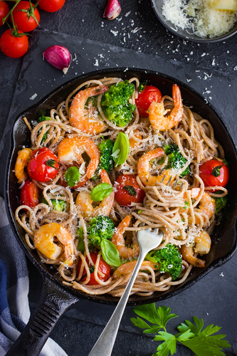 There are few diets that can’t be improved by a little extra seafood, and not just an overcooked breaded fish fillet once a week, but a variety of shellfish, too. In Italy, where food rarely travels more than a few miles from the farm or docks before being consumed, this is very much a regional dish, made with freshly caught ingredients and often eaten within sight of the ocean. Fortunately, most supermarkets make cooking these dishes (fisherman’s pasta, or fruit of the sea) easy by offering frozen variety packs containing different kinds of seafood.